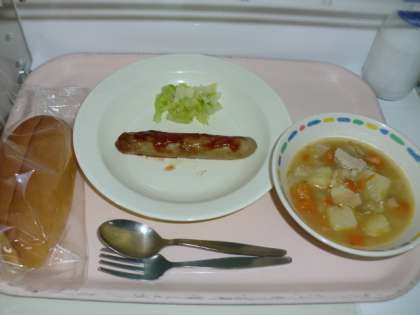 ホットドッグ(豆腐フランク ボイルキャベツ) 牛乳