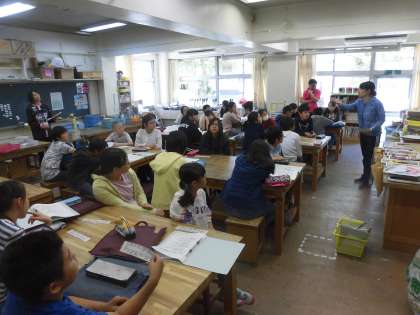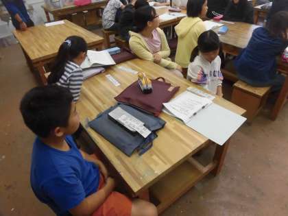 せせらぎ班の班長が休み時間に集まり、明日のせせらぎ班活動に向けて打ち合わせを行いました。6年生は、班長として話す内容や動き、下級生が話しやすいようにどのように接すればよいかなどの先生の話を、真剣に聞いていました。