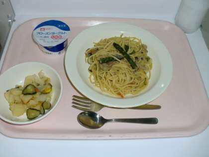 和風スパゲッティ 牛乳 ポテト入りフレンチサラダ
