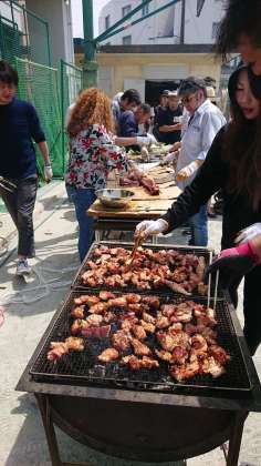 お肉も美味しく焼けました。先生たちも、楽しみにしていました。
