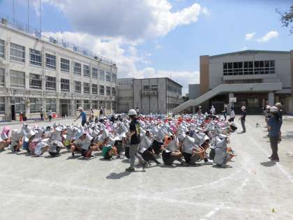 大規模な地震を想定した避難訓練を行いました。今年度に入り初めての避難訓練でしたが、1年生も落ち着いて行動することができました。人数確認のため待つ時間がありましたが、全ての児童が勝手なおしゃべりなどをせずきちんと待つことができました。