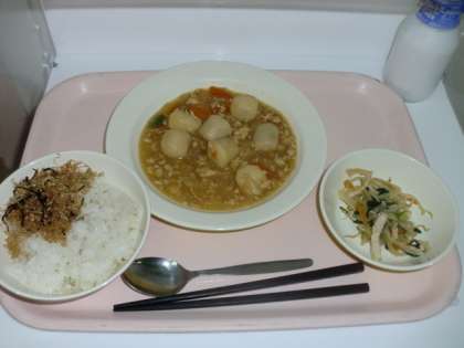 麦入りごはん 牛乳 カミカミ佃煮 里芋のそぼろ煮
