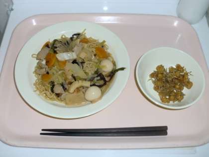 五目あんかけ焼きそば 牛乳 大豆とじゃこの甘辛揚げ