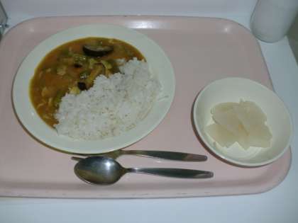 夏野菜のカレー 牛乳 大根の甘酢和え