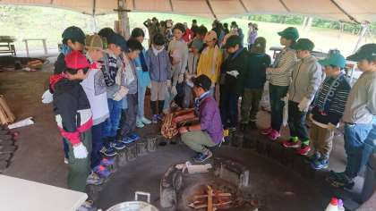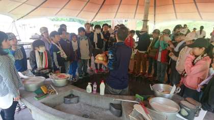 係ごとに別れて、飯ごう炊さんが始まりました。