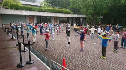 元気なあいさつがひびきました。ラジオ体操で、体も目覚めました。