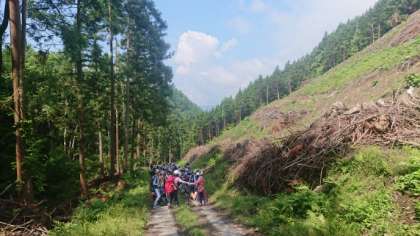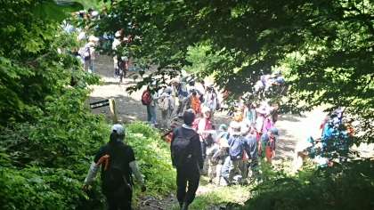 なかなか大変です。でも、ここはまだまだ序の口です。自分との戦いです。がんばって。登山道入口到着です。