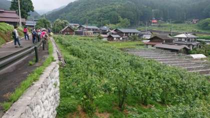 田植えが終わったばかりの田んぼがきれいです。ブルーベリーの実も、ついています。
