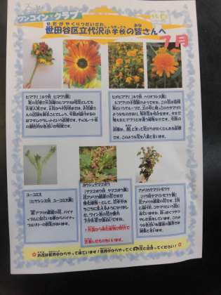 今月は、「ヒマワリ」「ヒメヒマワリ」「ユーコスモス」「ヨウシュヤマゴボウ」「アメリカテマリシモツケ」を使っています。ワンコインクラブの皆様、ありがとうございました。