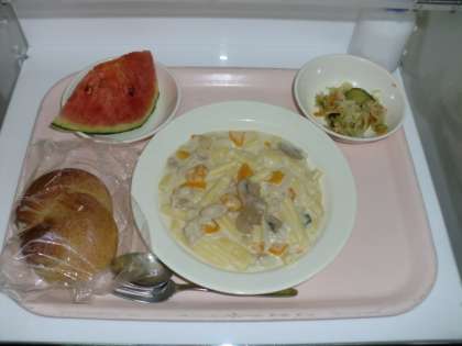 胚芽パン 牛乳 マカロニのクリーム煮 ツナサラダ