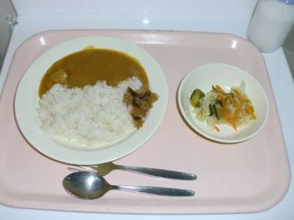 カレーライス 牛乳 福神漬け フレンチサラダ