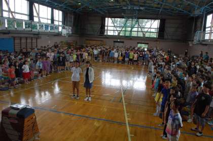 校舎3択クイズや、インタビューの映像や校舎紹介映像など、とっても心温まる時間になりました。最後に、6年生児童代表の掛け声で、全員で「ありがとうございました」と言いました。心に残る、素敵なお別れ集会になりました。
