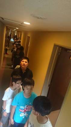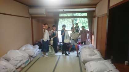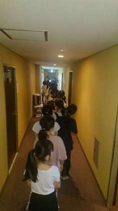 避難訓練もちゃんとやります。その後はしばし部屋ごとに過ごします。