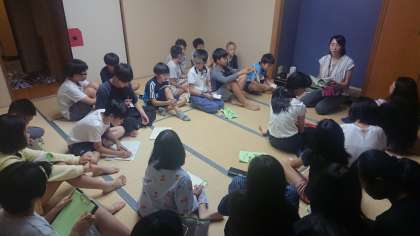 班長・室長会議で今日一日を振り返りました。明日に向けてさらに自主自立の精神でがんばっていきましょう。さあ、もうすぐ消灯です。