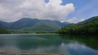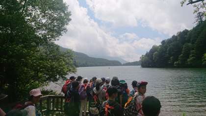 湯ノ湖の湖畔を湯滝目指して行きます。