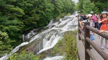 竜頭の滝に到着。がんばって歩きました。あとは、遊覧船です。