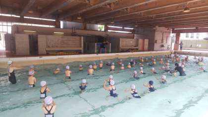次は新校舎のプールです。新しいプールで安全に楽しく学習しましょう。