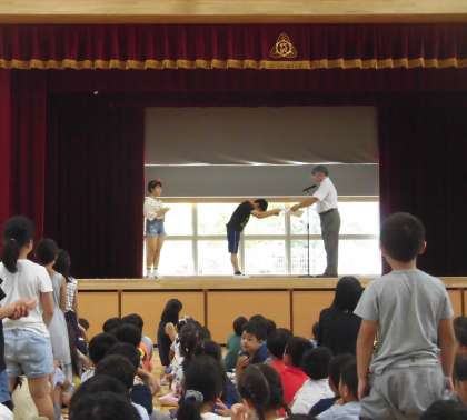 夏休みのラジオ体操皆勤賞の表彰が行われました。どんなことでも、毎日欠かさず継続できることは素晴らしいですね。