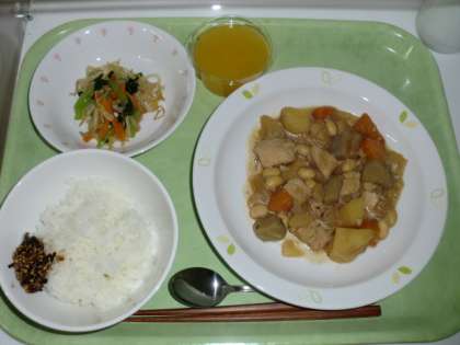ごはん 牛乳 塩こんぶふりかけ 豆いり筑前煮