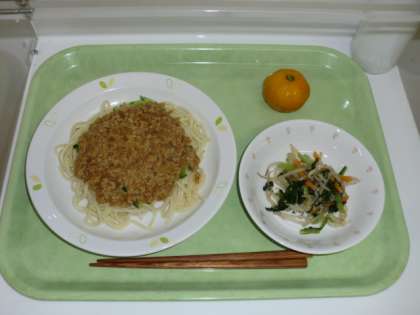 ジャージャー麺 牛乳 塩ナムル くだもの