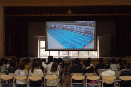 5・6時間目に水泳記録会が行われました。2人の代表児童は「6年間のプールの思い出、努力は力になるという実感」「仲間と協力する大切さ、連合運動会に向けての想い」について話しました。閉会式で校長先生は、応援の態度、あきらめない姿勢、記録の向上について、それぞれ嬉しく思う、とお話がありました。