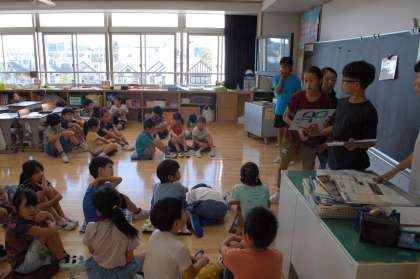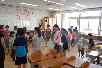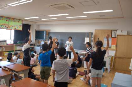 6年生のリーダーを中心に、それぞれの班で遊びを工夫していました。10月の全校遠足目指して、みんなで協力していきます。班長、頑張っています。