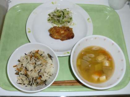 ひじきごはん 牛乳 鶏肉の南蛮あげ 野菜の甘酢あえ