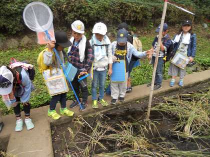 田んぼでは、イナゴ、カマキリ、トンボなど、いろいろな虫をつかまえ、観察することができました。