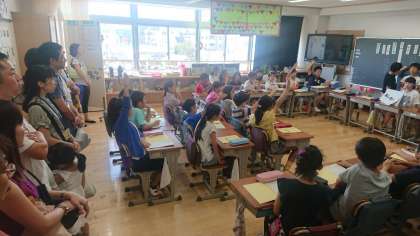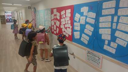 今日から学校公開が始まりました。来週水曜日までです。入口のところには、水曜日のバルーンリリースに向けて子どもたちが書いたメッセージのコピーが掲示されています。委員の皆さんの渾身の作品です。ありがとうございます。
