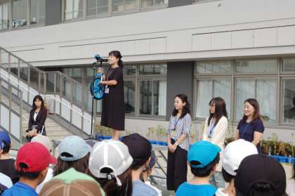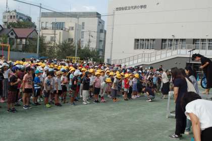 全校朝会で、PTAからベルマークで購入した一輪車をいただきました。
