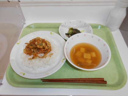 かきあげ丼 牛乳 わかめサラダ みそ汁