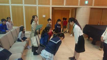 ホールでグループに分かれます。それぞれにガイドのボランティアの方がついてくださいます。