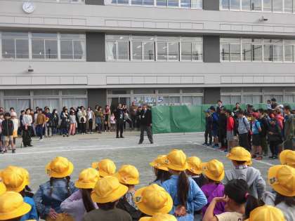 舟形交流の最終日、代沢小学校でミニお別れ会を行いました。校長先生のお話、代表児童の言葉ののち、全校児童で「さようなら、また会おうね」とお別れをしました。