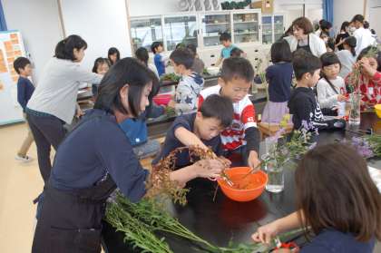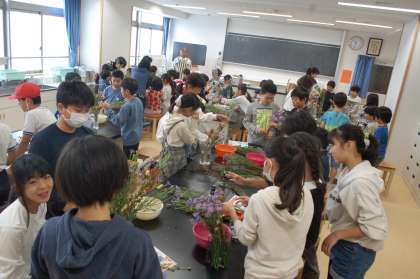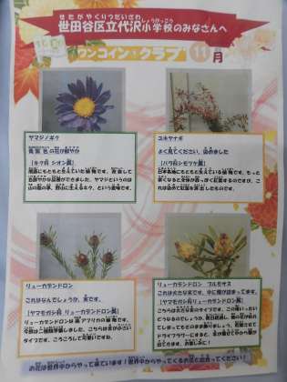 今月は「ヤマジノギク」「ユキヤナギ」「リューカデンドロン」「ブルモサス」を使っています。ワンコインクラブの皆様、ありがとうございました。