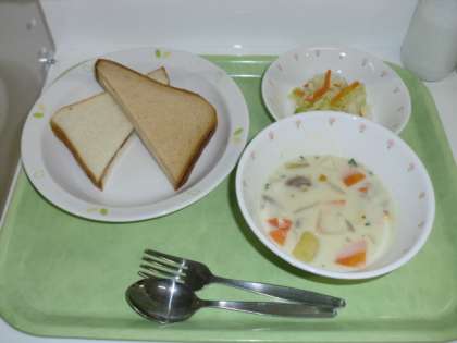 二色サンド 牛乳 クラムチャウダー キャベツサラダ