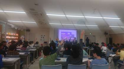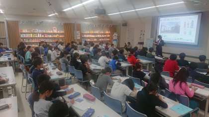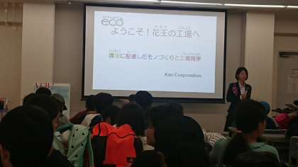 主に環境について、花王が気をつけていることなど学んでいます。みんなしっかり話を聞いています。