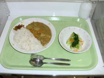 大根カレー 牛乳 福神漬け ブロッコリーサラダ