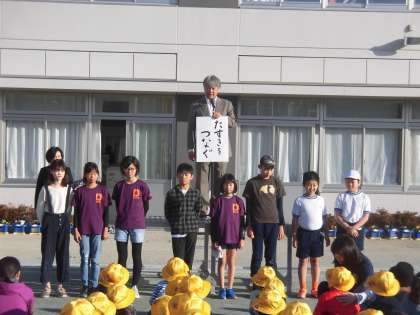 先日の世田谷子供駅伝でのたすきをつなぐ姿から、みんなも代沢小学校の歴史をつなぐ一人だと、お話がありました。