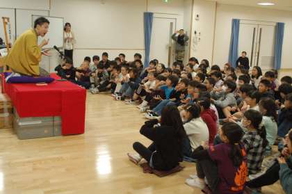 日本財団の方々がゲストティーチャーとして「海と日本プロジェクト」の一環として「海の親子寄席」の授業をしてくださいました。
