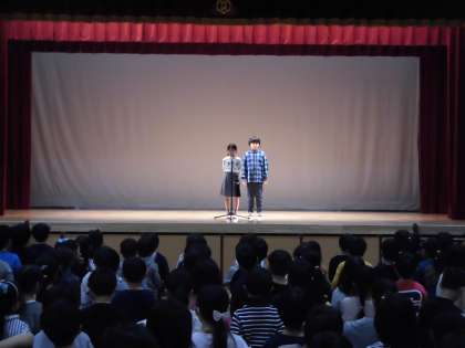 児童代表の言葉は4年生でした。「2学期にとび箱の学習で友達とアドバイスしあうことでできるようになった。周りには積極的に発言する人がいて、私もそうなりたいと思う。3学期は、色々なことにチャレンジして発言を増やし、周りを見て私自身もレベルアップできる3学期にしたい。」「世田谷紹介のビデオ作成や体育のゲーム学習で、みんなと関わり合うこと、アドバイスし合うこと、力を借りる大切さ、チームリーダーとして責任をもつ大切さを学べた。3学期は助け合いながら生活して、自分で判断して行動できるようになりたい。」と振り返りとがんばりたいことを立派に話せました。
