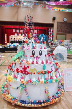 今年の展覧会は、オリンピックイヤーを意識するとともに、代沢の校舎落成・創立140周年を記念して開催されています。個人作品もとても素晴らしいですが、共同制作も各学年頑張りました。そして、学校全員の共同制作の大きなケーキも展示されています。この体育館でやる、初めての展覧会。華やかで、いきいき、ワクワクする素晴らしい展覧会になっています。午後も16時まで開かれていますので、是非いらしてください。