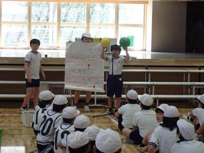 5・6年生合同で送別球技大会が行われました。大会の運営は、5年生が実行委員を中心に開会式、大会の運営、閉会式まで行いました。今日のために休み時間を使って準備を進めてきて、最高学年に向けての自覚も育ってきています。6年生は代表の言葉で、5年生への感謝と親交が深められたこと、スポーツで関係を強めることができること、卒業までの時間を大切にしていくことを話しました。