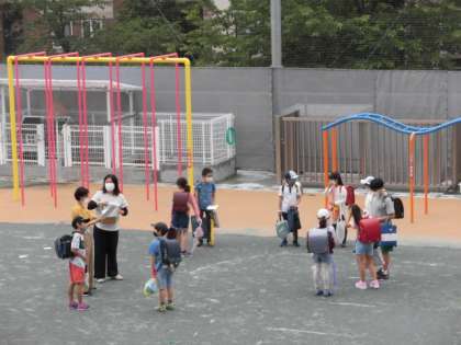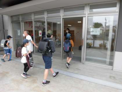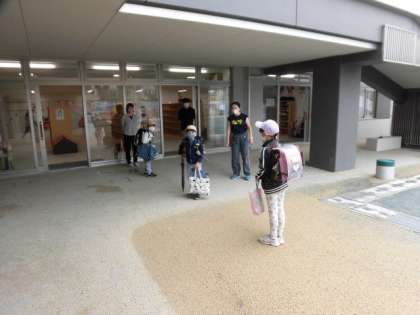 午後から授業のBグループの子どもたちが登校していきました。4月から本校に転校してきた子どもたちは一か所に集まってから各学級に向かいます。午前中は雨が降っていたので体育館前に集合しましたが、午後は雨も上がっているにでのぼり棒のところに集合です。緊張していると思いますが仲良く過ごしていきましょう。