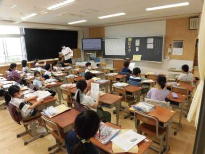 小学校に入学した1年生、3・5年生はクラス替えで新しい友達の新しい教室での生活が始まります。初めての教室の中は、みんな静かに話を聞いています。まだ、クラスの全員は集まれませんが、早く友達を作って楽しく過ごしてください。
