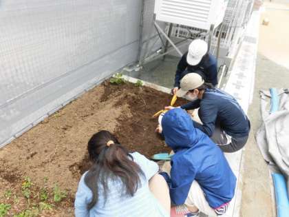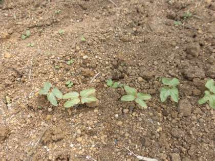 学校休業中に1年生の先生方が、花だんにまいていた「たね」から「め」がでてきました。どんな花が咲くにか楽しみに見ていきましょう。