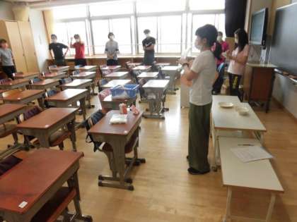 今のところ、給食の開始は6月22日(月)の予定となっています。今年度から牛乳は紙パックへ変更となります。給食を安全に配食するための方法について、先生方が実際の教室で話し合っています。給食開始までに検討しなければいけないことの確認ができました。今後、保護者の皆様にご協力をいただくこともあります。学校の対応が決まりましたら、改めてお知らせいたします。ご協力をお願いします。