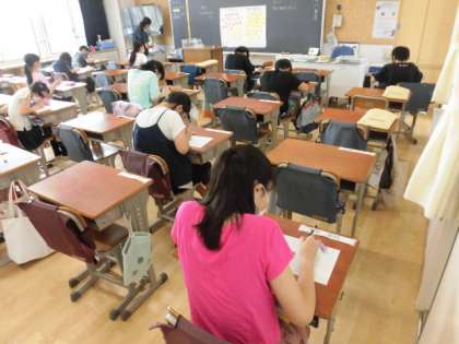 6年生の教室では、漢字テストに静かに取り組んでいます。2年生は1年生の時に育てた花を植木鉢から外しています。土の中には大きな球根が育っていました。4年生も算数の勉強に頑張って取り組んでいます。