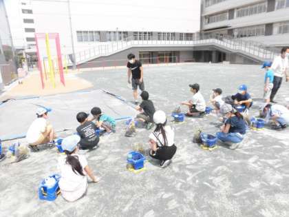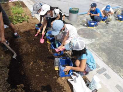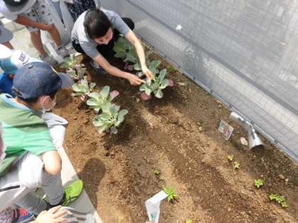 3年生は、理科の学習で校庭で、鉢に土を入れてホウセンカの種をまいています。キャベツの葉っぱにモンシロチョウが飛んできてたまごをうんでいました。幼虫もたくさんいました。これから、ホウセンカも幼虫もよく見ていきましょう。