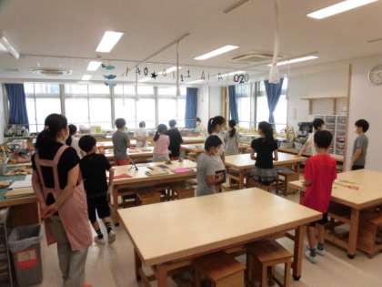 5年生が久しぶりに図工室にきました。4年生の3学期から入っていないので3か月ぶりです。図工室での授業はすぐには再開できませんが、久しぶりの図工室、新しく教えていただく小久保先生としっかりとあいさつができました。