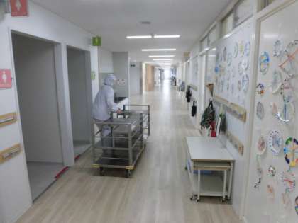 6月22日(月)からの給食開始に向けて、給食室のみなさんが各教室への給食の運搬のシミレーションをしてくださっています。安心・安全に給食を届けるためにみなさん真剣に取り組んでいます。教員のしっかりと確認をして来週からの給食指導に備えます。ご家庭でもランチョンマットの準備等、ご協力をお願いします。